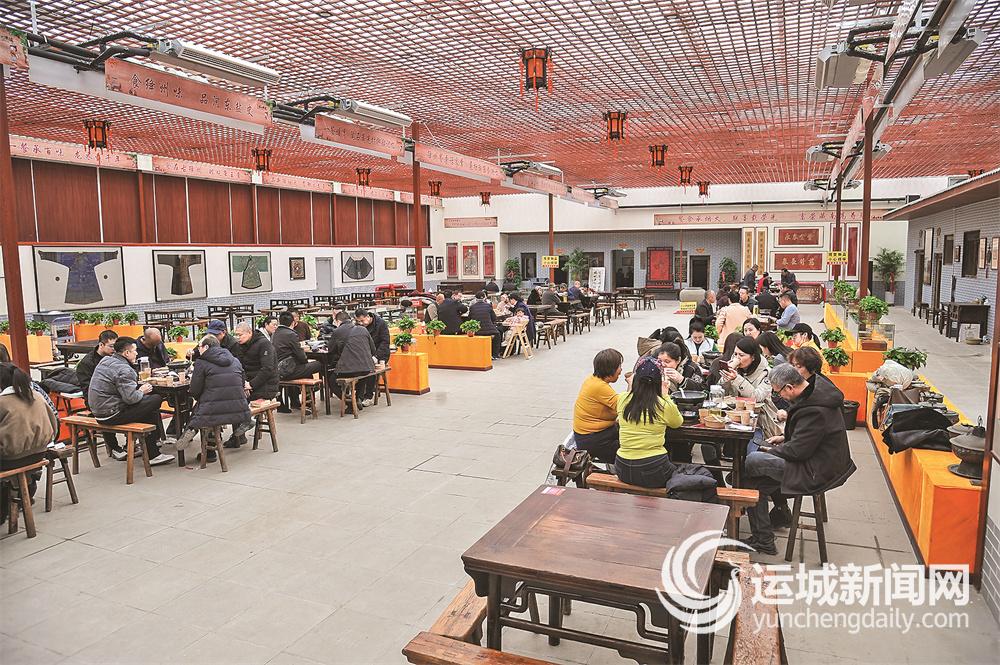 文化園里的絳州名吃廳成為此次探訪的“重頭戲”。廳內熱氣氤氳,香氣四溢,做飯的大師傅們在餐桌前方圍成一圈做菜,明廚亮灶肉眼可見,來此吃飯的游客和附近村民絡繹不絕。由豬腸包裹新鮮豬肝、豬肺等下水制作而成的豬卷子味道醇香濃郁,搭配香醋、辣子蘸料,一口一個停不下來;新絳火鍋咕嘟作響,層層碼放的酥肉、丸子與豆腐、白菜等在濃湯中翻滾,配上一口暄軟的花卷,暖胃更暖心;現炸的油糕外酥里嫩,輕輕一咬,香甜的紅糖漿便流淌而出;就連家常的小米粥都是用柴火灶熬得黏稠醇厚,散發著純粹的米香。有成員在品嘗后興奮地建議:“可以增設研學體驗項目,比如讓孩子們親手制作面條,在勞動中深入感受新絳美食文化的魅力。”