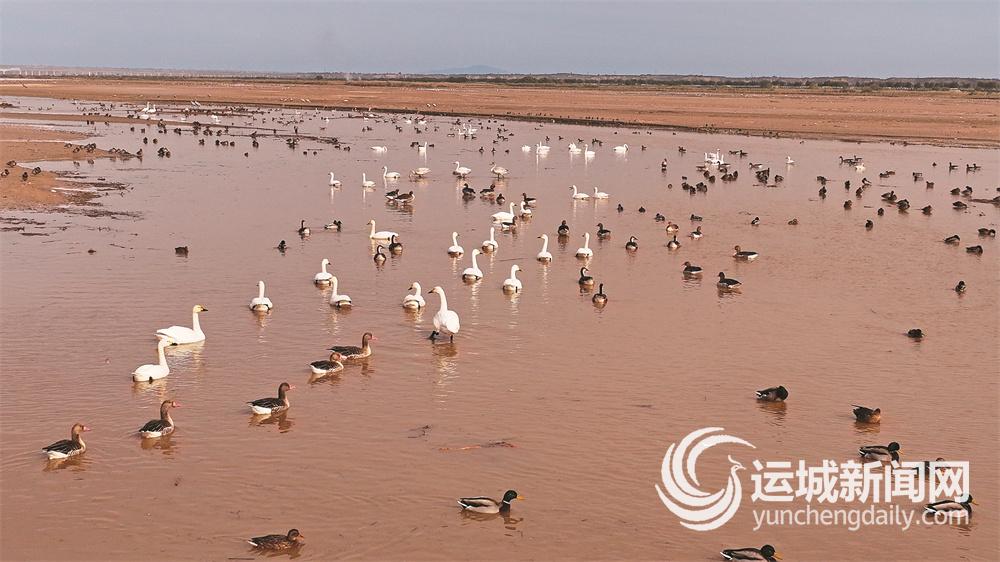 11月17日,永濟黃河濕地迎來一年一度的候鳥越冬高峰。大雁、白天鵝、灰鶴、綠頭鴨等多種珍稀候鳥陸續(xù)飛抵,它們或在水面嬉戲、或在灘涂覓食、或在空中翱翔,為冬日的黃河濕地帶來了活力。 特約攝影 陳春明